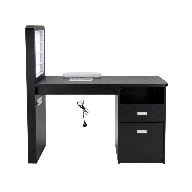 Built with the needs of nail technicians in mind, the Aura Black Manicure Table offers a spacious and stable work surface that supports precision manicure treatments. The layout allows technicians to work comfortably while maintaining close interaction with clients. Its practical design helps streamline services, improve posture, and support smooth workflow during every appointment.