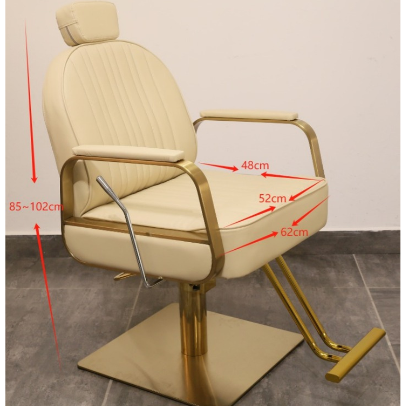This professional beauty chair is designed with comfort and durability in mind. The supportive seat and backrest help clients stay comfortable throughout their service, while the sturdy gold frame ensures everyday reliability. For context on how salon chairs enhance professional service delivery, see