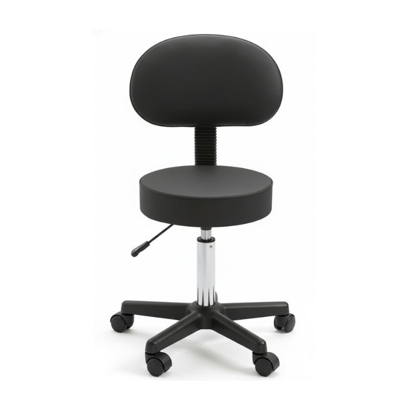 This classic beauty stool features a padded seat and adjustable height, allowing beauty professionals to work comfortably throughout long service sessions. Its smooth swivel base and sturdy casters enable easy movement, supporting efficient workflow during treatments.