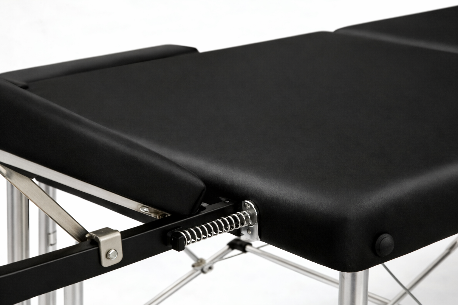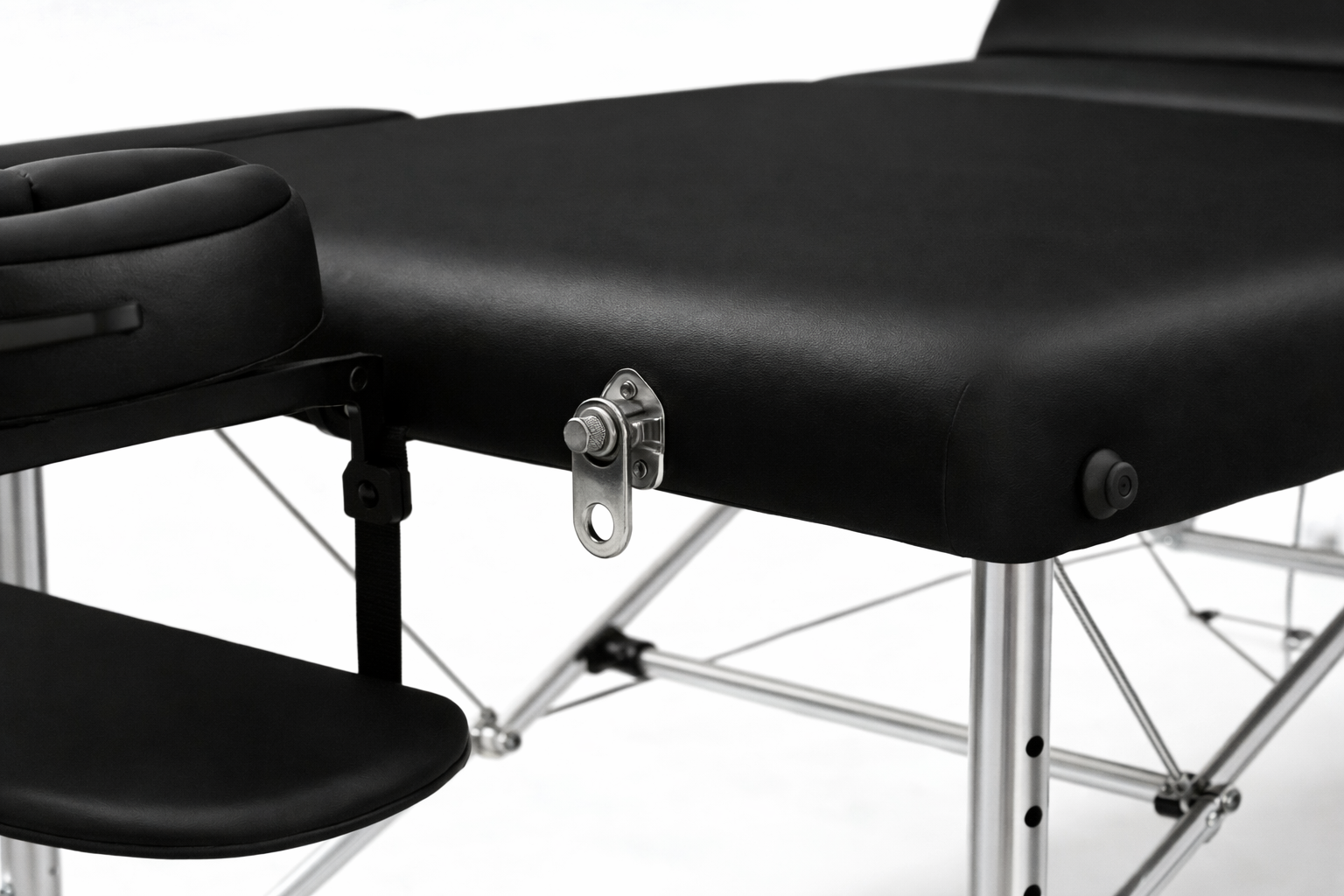 The aluminium leg construction offers an ideal balance of strength and reduced weight, making the table easier to transport without compromising stability. This design is especially beneficial for mobile therapists who require dependable equipment that can be set up and packed down regularly. The aluminium frame supports long term durability and professional performance.