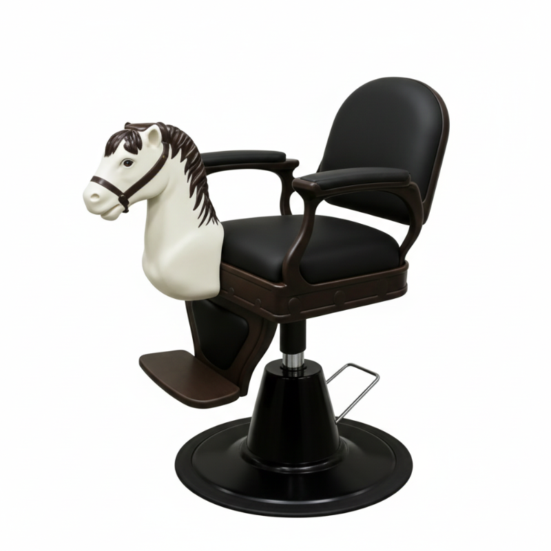 This professional kids hairdressing chair features a stable base and padded seat to keep children secure and comfortable during grooming sessions. The Gidee Up design helps haircuts and trims feel fun, keeping kids at ease from start to finish.