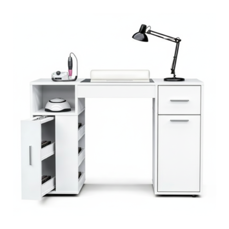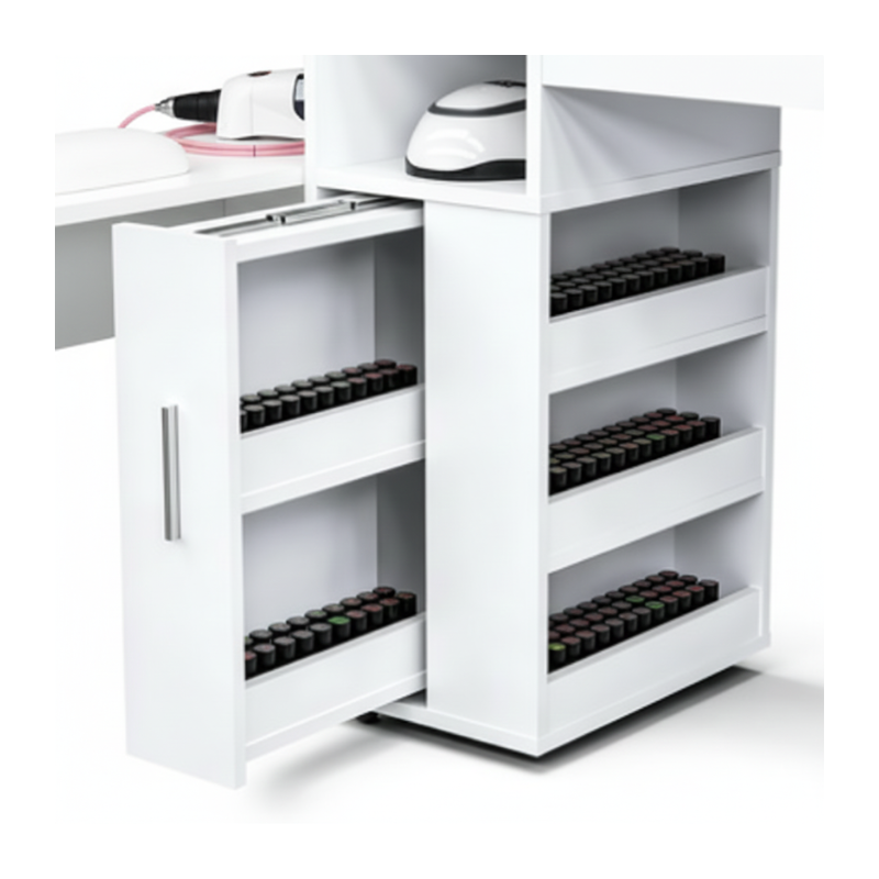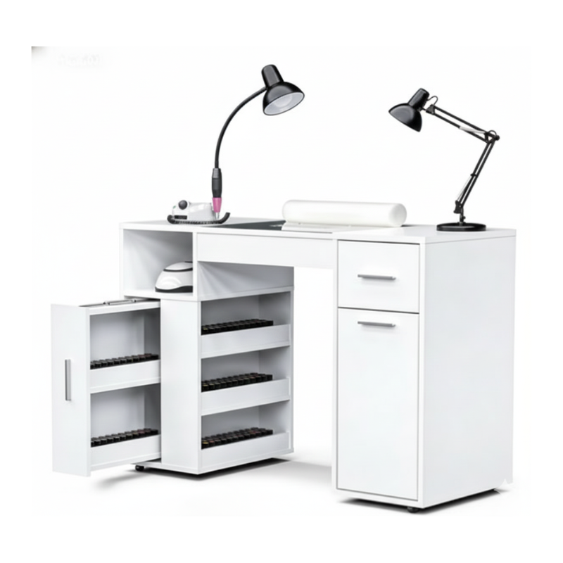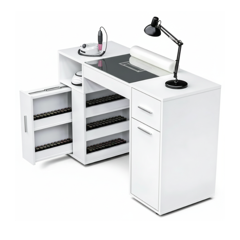 With thoughtful design elements and practical storage features, this nail station supports efficient work habits and keeps your salon workspace tidy and professional. Spacious work surfaces, drawers or compartments, and optional accessory holders make it easy to organise files, buffers, brushes, and other essential tools during service. :contentReference[oaicite:1]{index=1}
