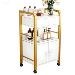 Furthermore, the strong wheels make it very easy to move this unit around your facial, lash, or massage station. This mobile design helps specialists who need a flexible workspace during daily tasks. To build a complete suite, you can explore our full range of salon trolleys. In addition, we offer designer furniture to help you maintain a high service standard. Since we value quality, we build the Jolie Luxe Spa Trolley with tough materials for long-term use.