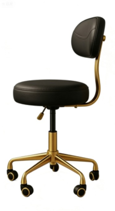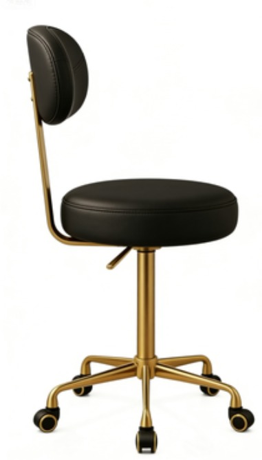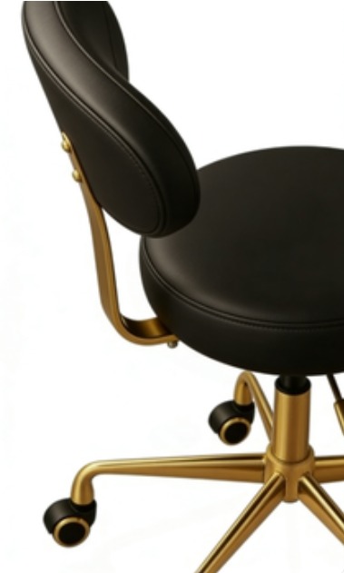 The luxe studio stool black and gold is designed for professionals who want ergonomic support without compromising on aesthetics. Its rich finish and ergonomic design help reduce fatigue during long sessions while elevating your salon environment.