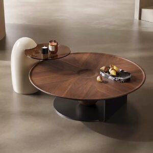 Marella Coffee Table – Modern Round Coffee Table with Sculptural Side Table